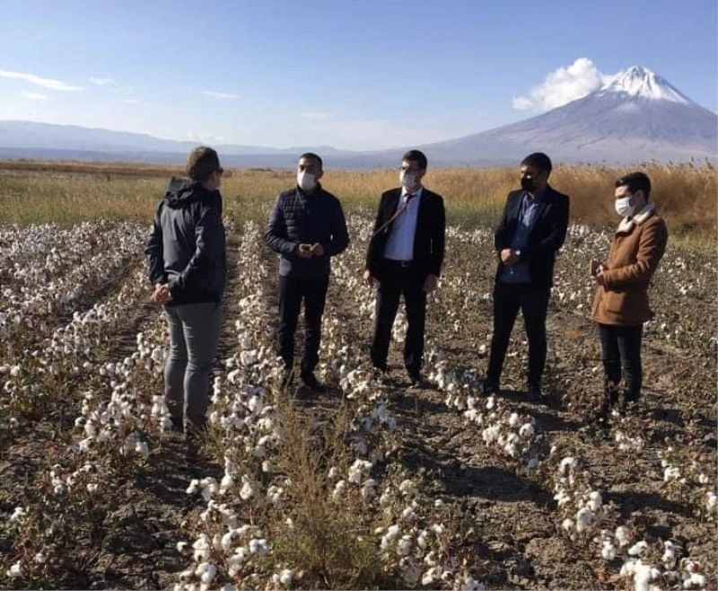 Iğdır’ın Aralık ilçesinde bulunan pamuk tarlalarında hasat olgunluğuna gelmiş pamuk tarlaları Kaymakam Mustafa Görmüş, İlçe Tarım ve Orman Müdürü Erhan Eroğlu tarafından gezilerek gerekli incelemeler yapıldı.