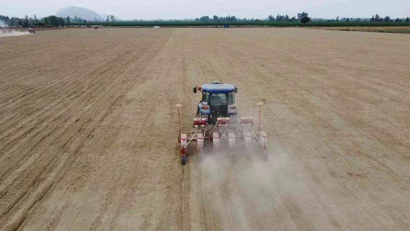 Adana’nın Kozan ilçesinde buğday hasadının ardından ikinci ürün yer fıstığı ekimine başlandı.