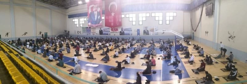 Korona virüs (Covid-19) salgını ile mücadele kapsamında İlçe Hıfzıssıhha Kurulu tarafından alınan karar doğrultusunda açık alanlarda kılınması planlanan Cuma namazı camilerde ve Mahmut Atalay kapalı spor salonunda kılındı.