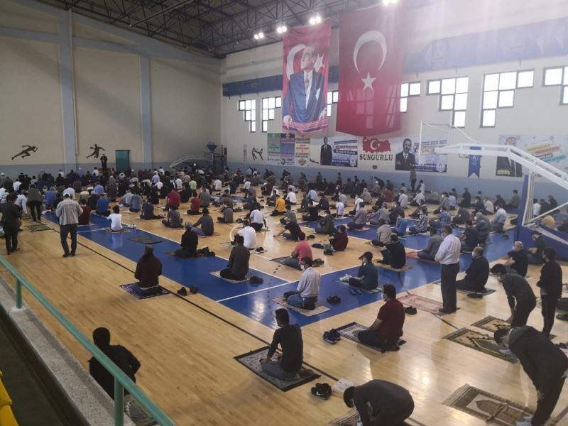 Sungurlu’da bu hafta Cuma namazı, havanın yağmurlu olması sebebiyle Cami içerisinde ve Mahmut Atalay Spor Salonunda kılındı.