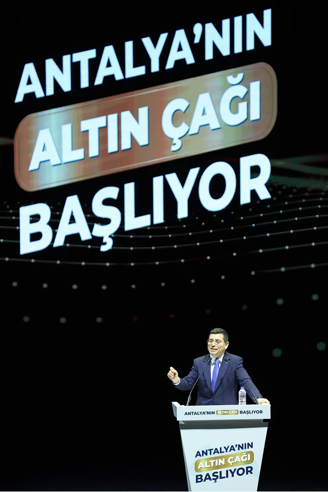 "Antalya'yı geleceğin teknolojileriyle buluşturacak raylı sistem ağlarıyla donatmak gerekiyor. Raylı sistem ağlarını geliştirmemiz lazım. Antalya'nın altın çağında metroculuğun ilk adımlarını atacağız. Konyaltı Sarısu, Antalya Stadyumu, Kepez Belediyesi hatlarını yeraltı raylı sistem hattına dönüştüreceğiz. Zerdalilik-Lara hattında metro projesini hafif raylı sistemle başlatacağız."