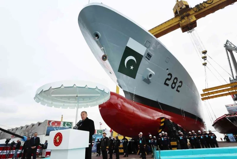 Cumhurbaşkanı Recep Tayyip Erdoğan, Pendik’te bulunan İstanbul Tersane Komutanlığında düzenlenen ‘Pakistan MİLGEM Projesi Çerçevesinde İnşa Edilen Üçüncü Geminin Denize İniş, Açık Deniz Karakol Gemisi Projesi Birinci Gemisi Blok Kızağa Koyma ve İkinci Gemisi Sac Kesim Töreni’ne katıldı.