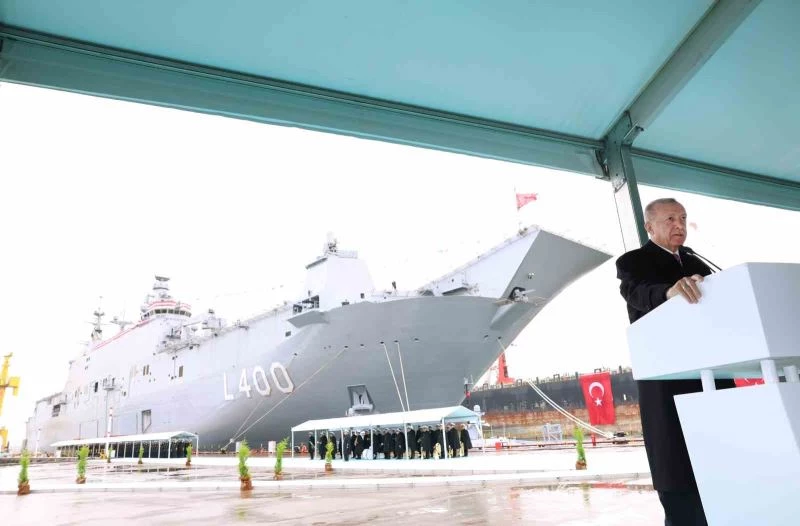 Cumhurbaşkanı Recep Tayyip Erdoğan, Tuzla TCG Anadolu Gemisi Teslim Töreni ve Yeni MİLGEM Fırkateynleri Sac Kesme Töreni’ne katıldı. Erdoğan, “Türkiye’nin kendi gemisini tasarlayan, geliştiren, inşa ve idame eden 10 ülkeden biri olması, kuru bir slogan değil, gurur duyulacak bir başarıdır” dedi.
