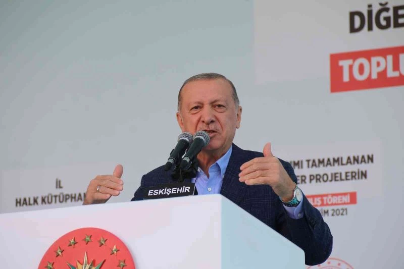 Cumhurbaşkanı Erdoğan, ülkeye kazandırdıkları eser ve hizmetlere güvendiklerinin altını çizerek, “Eskişehir’den başlayalım. 81 vilayetimizin tamamında insanlarımıza bu hakikatleri anlatmak için arkadaşlarımızla birlikte gece gündüz çalışıyoruz, çalışacağız. Türkiye’nin 2023 imtihanını da başarıyla verdiğinde Allah’ın izniyle gerçekten 21. yüzyılın parlayan yıldızı olacağından zerre kadar şüphe duymuyoruz. Bunun için de üzerimize ne düşerse yapacağız. Değerli kardeşlerim; atalar, ‘Tarlada izi olmayanın, harmanda yüzü olmazmış’ derler. Biz tarladaki izimize yani ülkemize bugüne kadar kazandırdığımız eser ve hizmetlere güvenerek milletimize mutlu, güzel bir gelecek vaat ediyoruz. Muhalefetin aynı yalanları iftiraları döndürüp dolaştırıp tekrarlamasının 84 milyonun tek bir ferdine bile en küçük bir faydası yok, ama bizim 81 vilayetimizin her birine kazandırdığımız eser ve hizmetlerin her bir insanımızın günlük hayatında somut karşılıyorlar” diye konuştu.