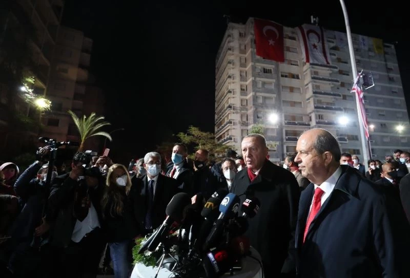 Cumhurbaşkanı Recep Tayyip Erdoğan, Kuzey Kıbrıs Türk Cumhuriyeti Cumhurbaşkanı Ersin Tatar’ın daveti üzerine KKTC’nin 37’nci kuruluş yıldönümü törenleri kapsamında KKTC’ye geldi. Cumhurbaşkanı Erdoğan, resmi ziyareti kapsamında Lefkoşa’da Atatürk Anıtı’nı ziyaret ettikten sonra Dr. Fazıl Küçük Bulvarı’ndaki resmi geçit törenine katıldı. Törenin ardından Erdoğan, Milliyetçi Hareket Partisi (MHP) Genel Başkanı Devlet Bahçeli ile 46 yıl sonra açılan kapalı Maraş’ı ziyaret etti.