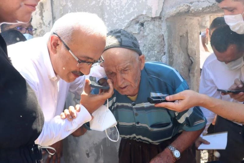Yenikaş Mahallesi'ndeki incelemesinde, yangında evi zarar gören Küçük'ü ziyaret eden Elvan, hem geçmiş olsun dileklerini iletti hem de devletin kurumlarının yanında olacağını söyledi.