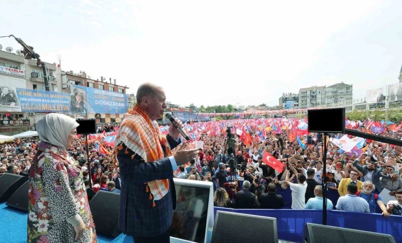 Aydın’ın sadece İstiklal harbinde değil demokrasi tarihinde de önemli yeri olduğunu belirten Erdoğan, "Burası şehit başbakanımız Adnan Menderes’in memleketidir. Menderes ve arkadaşlarını yad ediyorum. Merhum Menderes ömrünü demokratikleşmeye adamış büyük bir devlet adamıydı. Minarelerimizde ezanı Muhammedi’ler onun döneminde yükseldi. Menderes’i idama götürenler kimlerdi? O günün CHP’si. Şu andakilerin farkı var mı aynı. Masanın etrafında fırıldak çeviriyorlar. Bunlarda tezgah fırıldak çok. Çiftçimiz traktörle, makineyle onun döneminde tanıştı. Cumhurla cumhuriyet arasındaki uçurumlar ilk kez onun döneminde kapandı. Milletimiz Menderes’te kendini gördü. İnsanımız onda ilk defe gerçek manada bir halk adamı gördü. Girdiği her seçimde sahip çıktı. Menderes’in yeter söz milletindir diye yürüdüğü yolculuk 27 Mayıs darbesi ile son buldu. 27 Mayıs milletten asla yüz bulamayan CHP’yi iktidara getirme operasyonu, senaristi CHP’nin milli şefidir. Pazar günü bu rövanşı alıyor muyuz? Sandıktan çıkamayacağın anlayan CHP’nin Genel Başkanı milleti kışkırtmış müdahaleye meydan hazırlamıştı. Üniversite öğrencilerinin kıyma yapıldığı yalanını uydurdular. Menderes’in uçaklar dolusu altın kaçırdığı yalanına kadar her türlü kepazelik sergilendi. Bu süreçlerin aynısını biz de yaşadık. Yalanların iftiraların hedefi olduk. Mahkeme kararıyla önümüz kesmek istediler. Tek parti faşizmi temsilcilerinin yalanlarının iftiralarının hedefi olduk. Vesayetle gözümüzü korkutmaya çalıştılar. Gezi olaylarında sokaklarımızı ateşe vererek bizi sindirmeye çalıştılar. 17-25 Aralık’ta milli iradeyi gasp ettiler. 15 Temmuz’da canımıza kastettiler ailecek. Bay bay Kemali’ de Bakırköy Belediye başkanının evine kaçırdılar. Milletimizle aramıza giremeyenler siyaset operasyonları ile hareket ettiler. Seçim bürolarımıza molotof bombaları atıldı. Kürt ve Alevi videolarının ne gaye ile yapıldığını iyi biliyoruz. Hepsi bizim kardeşimiz, Yaradılanı yaradandan ötürü severiz. Türkiye’nin Suriyelileştirilmesine rıza göstermeyeceğiz. Huzur iklimine sahip çıkacağız. Sizi galeyana getirmek isteyenlere fırsat vermeyin. Tepkinizi sandıkta gösterin. Hesabınızı sandıkta sorun" diye konuştu.