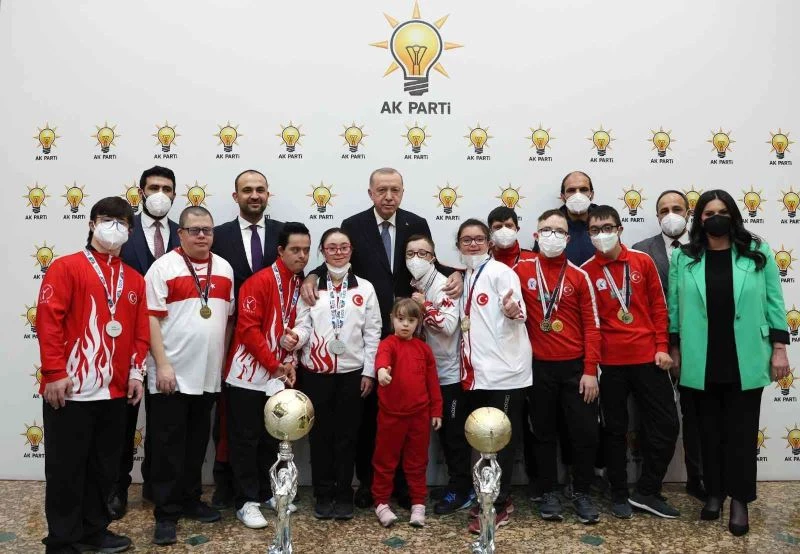 Cumhurbaşkanı Recep Tayyip Erdoğan, Down Sendromu Farkındalık Günü münasebetiyle özel sporcularla bir araya geldi.
