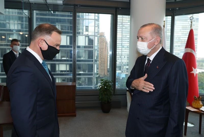 BM Genel Kurulu 76. Toplantısı için New York’ta bulunan Cumhurbaşkanı Erdoğan, Polonya Cumhurbaşkanı Andrzej Duda ile Türkevi’nde bir araya geldi. Görüşmede, konuk Cumhurbaşkanının heyetinin yanı sıra Dışişleri Bakanı Mevlüt Çavuşoğlu, Milli Savunma Bakanı Hulusi Akar, Kültür ve Turizm Bakanı Mehmet Nuri Ersoy, Cumhurbaşkanlığı sözcüsü Büyükelçi İbrahim Kalın ve İletişim başkanı Fahrettin Altun da hazır bulundu.