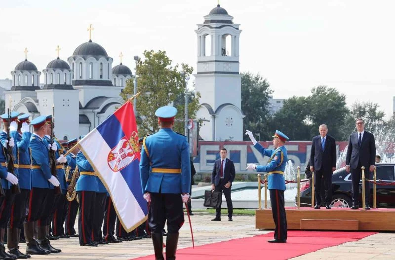 Cumhurbaşkanı Recep Tayyip Erdoğan, Bosna Hersek’in ardından Balkan turunun ikinci durağı olan Sırbistan’a dün akşam saatlerinde geldi. Nikola Tesla Havalimanı’nda Sırbistan Cumhurbaşkanı Aleksandar Vuçiç tarafından karşılanan Cumhurbaşkanı Erdoğan, temaslarına bugün başladı. Cumhurbaşkanı Erdoğan, Belgrad’da bulunan Cumhurbaşkanlığı Sarayı’nda Sırbistan Cumhurbaşkanı Aleksandar Vuçiç tarafından resmi törenle karşılandı. İki ülke marşlarının okunduğu törende, Cumhurbaşkanı Erdoğan askeri kıtayı selamladı. Törenin ardından Erdoğan’a Sırbistan heyeti, Vuçiç’e ise Türk heyet tanıtıldı. İki lider daha sonra görüşmeye geçti.