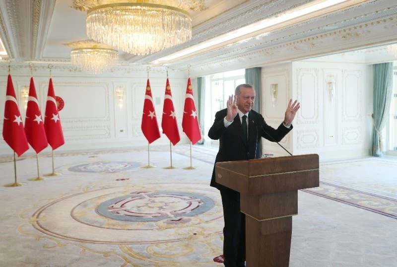 Konuşmasının devamında Cumhurbaşkanı Erdoğan, “Salgın döneminde iki sektörün önemi bir kez daha ortaya çıkmıştır. Bunlardan birisi sağlık diğeri gıda ve tarımdır. Elimizdeki imkanları bu süreçte pek çok dost ve kardeş ülke ile de paylaştık. Pek çok ülkede temel ihtiyaçlar karşılanamazken ülkemizde hiçbir sıkıntı ile karşılaşmadık. Çünkü Türkiye kendi ihtiyacını karşılamanın ötesinde üretim gücüne sahip bir ülkedir.