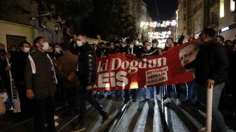 Seslerini duyurmak isteyen gençleri gören Beyoğlu Belediye Başkanı Haydar Ali Yıldız kalabalık grubun yanına geldi. Üzerinde Cumhurbaşkanı Erdoğan’ın Kasımpaşa sporlu formasının olduğu pasta ile fotoğraf çekilen grup daha sonra sessizce buradan ayrıldı.