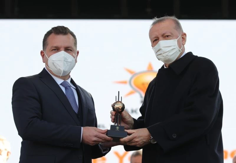 Balıkesir Büyükşehir Belediye Başkanı Yücel Yılmaz, Başkent Millet Bahçesi’nde, Cumhurbaşkanı Recep Tayyip Erdoğan’ın teşrifleriyle düzenlenen Yerel Yönetimler Gençlik Festivali’ne katıldı. Gençlik için yaptığı çalışmalarla ödüle layık görülen Başkan Yılmaz ödülünü Cumhurbaşkanı’nın elinden aldı.