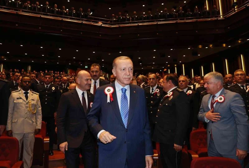 Cumhurbaşkanı Recep Tayyip Erdoğan, Beştepe Millet Kongre ve Kültür Merkezi’nde Polis Akademisi Polis Amirleri Eğitimi Merkezi 6. Dönem Mezuniyet Töreni’nde konuştu. Polis Amirleri Eğitim Merkezi’nde 6 dönem olarak eğitimlerini tamamlayan 72 misafir öğrenci ile toplam 681 komiser yardımcısını tebrik ettiğini belirten Erdoğan, ”Sizleri; vatana, millete ve devlete onurla, gururla, sadakatle hizmet edecek alından öpülesi kıymetli evlatlar olarak yetiştiren ailelerinize şükranlarımı sunuyorum. Dereceye giren Komiser yardımcılarımızı da hassaten tebrik ediyorum. Türkiye’nin yakın dönemde yaşadığı en büyük felaketlerden birinin müsebbibi FETÖ ihanet çetesinin en çok zarar verdiği kurumlarımız dan biri de emniyet teşkilatımızdır. Bilindiği gibi bu amaçla polis akademisini 2015 yılında yeniden yapılandırdık. Böylece FETÖ’sünden PKK’sına kadar tüm örgütlerin hedefi olan Emniyet Teşkilatımızın insan kaynağı tedarik ve eğitim sistemini sadece devlete ve millete hizmet edecek şekilde bir yapıya kavuşturduk" dedi.