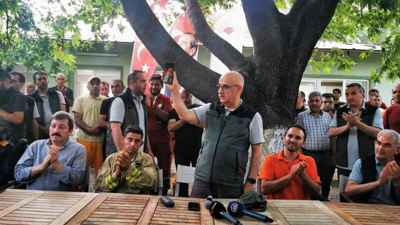 Orman işçilerine teşekkür eden Bakan Kirişci, “21 Haziran günü başlayan yangından dolayı bütün birimlerimiz teyakkuz haline geçmiş ve 8 dakika gibi kısa bir sürede gerekli çalışmalar başlatılmış ve an itibariyle de kontrol altına alınmıştır. An itibariyle de 1 helikopter, 40 arazöz, 7 dozer ve 760 personelimiz bu operasyonda aktif olarak görev almıştır. Daha sonra gelen destekler ile birlikte yoğun çaba sarf edilmiştir. Hamdolsun 68 saat gibi bir sürede sizlerin alın teri ve gayreti ile bu operasyon sonlandırmıştır. Dün ve bugün soğutma işlemlerinde çalışmalarımız yürütülmüştür. Özellikle her birinize gerek şahsın ve milletim adına şükranlarımı sunuyorum. İyi ki varsınız. Cumhurbaşkanımızın talimatları ile size ikramımız olacak. Çam sakızı çoban armağanı. Tekrar gayretleriniz için ayrıca teşekkür ediyorum” dedi.