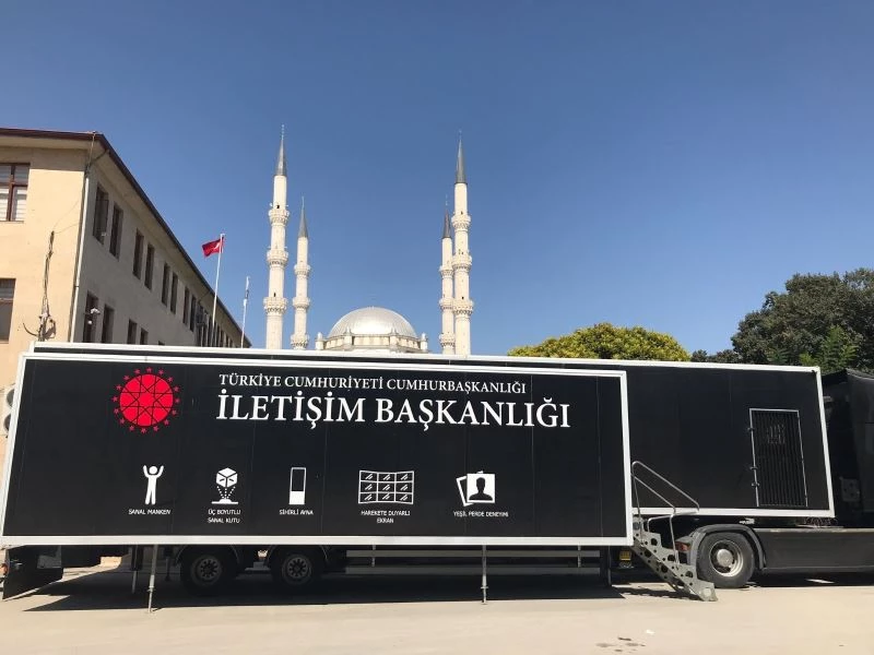 Türkiye’nin milli, tarihi, kültürel, bilimsel ve teknolojik zenginliklerinin dijital sunumlarla anlatıldığı Cumhurbaşkanlığı İletişim Başkanlığı Dijital Tır’ı 17 Eylül 2021 tarihine kadar saat 12.00 ile 19.00 saatleri arasında ziyaretçilerini ağırlayacak.