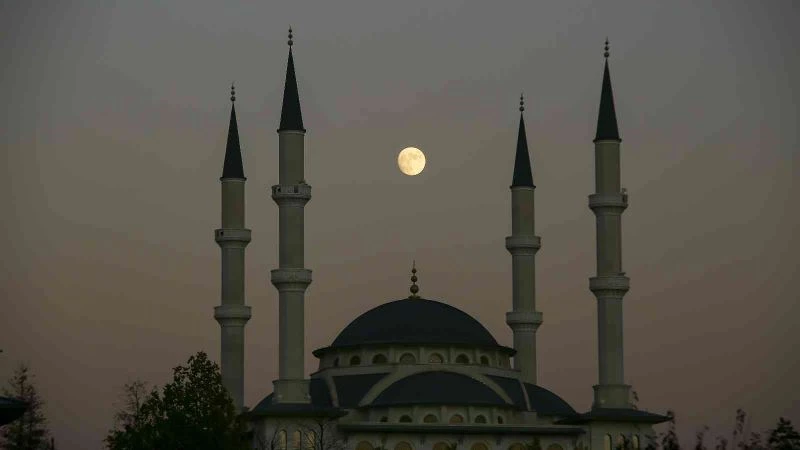 Ankara semalarında akşam saatlerinde görünen dolunay, Cumhurbaşkanlığı Külliyesi Millet Cami ile birlikte muhteşem bir görsel şölen sundu.