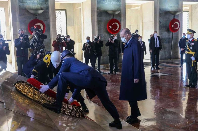 Cumhurbaşkanı Recep Tayyip Erdoğan, beraberindeki devlet erkanı ile birlikte 29 Ekim Cumhuriyet Bayramı dolayısıyla Anıtkabir’i ziyaret etti. Törende Cumhurbaşkanı Erdoğan, TBMM Başkanı Mustafa Şentop, Cumhurbaşkanı Yardımcısı Fuat Oktay, CHP Genel Başkanı Kemal Kılıçdaroğlu, MHP Genel Başkanı Devlet Bahçeli, İYİ Parti Genel Başkanı Meral Akşener, Cumhurbaşkanlığı Kabinesi üyeleri, yüksek yargı temsilcileri, siyasi parti temsilcileri, Genelkurmay Başkanı Orgeneral Yaşar Güler ve kuvvet komutanları ile birlikte Aslanlı Yol’dan yürüyerek Atatürk’ün mozolesine geldi. Mozoleye çelenk bırakılmasının ardından saygı duruşunda bulunuldu ve İstiklal Marşı okundu. Heyet, daha sonra Misak-ı Milli Kulesi’ne geçti. Anıtkabir Özel Defteri’ni imzalayan Erdoğan, kendisini alkışlayan vatandaşları selamladı. Erdoğan, daha sonra MHP Lideri Bahçeli ile birlikte Anıtkabir’den ayrıldı.