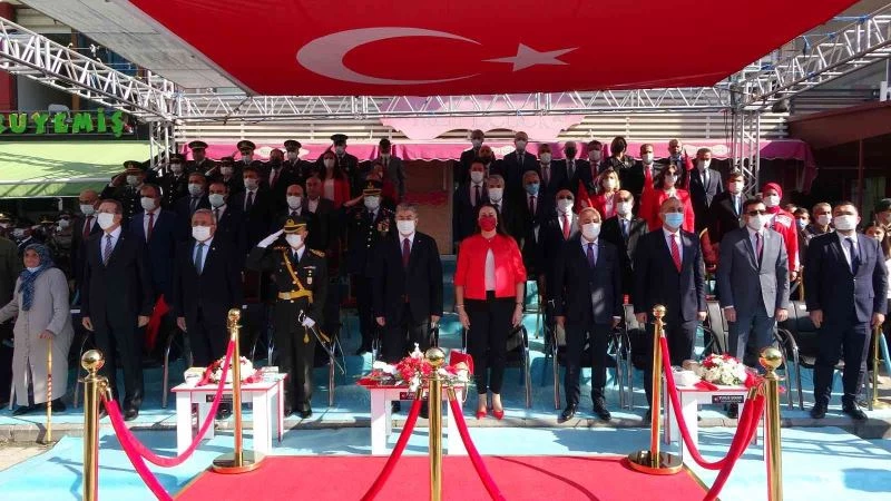 Vali Yılmaz yaptığı konuşmada, “Cumhuriyet bağımsızlığından ödün vermeyen, hiçbir zorluğa boyun eğmeden, yurduna ve egemenliğine sahip çıkan, Atatürk ilke ve inkılâplarını gönülden benimseyen büyük Türk Milleti’nindir. Cumhuriyet göklerde dalgalanan bir hilal uğruna mücadele veren, vatan aşığı ve bayrak sevdalısı Türk evlatlarınındır. ’Vatan uğruna ölmek, esaret altında yaşamaktan daha onurludur. Ne mutlu vatan uğruna canını verene!’ diyerek Kuvâ-yi Milliye ruhuyla vatan topraklarına sahip çıkan, heybesinde azığı, elinde silahı olmadan canlarını ortaya koyan yüce Türk Milleti, bu mukaddes vatanımızın her bir karış toprağı için yüzlerce ananın gözyaşını, binlerce şehidimiz kanını feda etmiştir” diye konuştu.