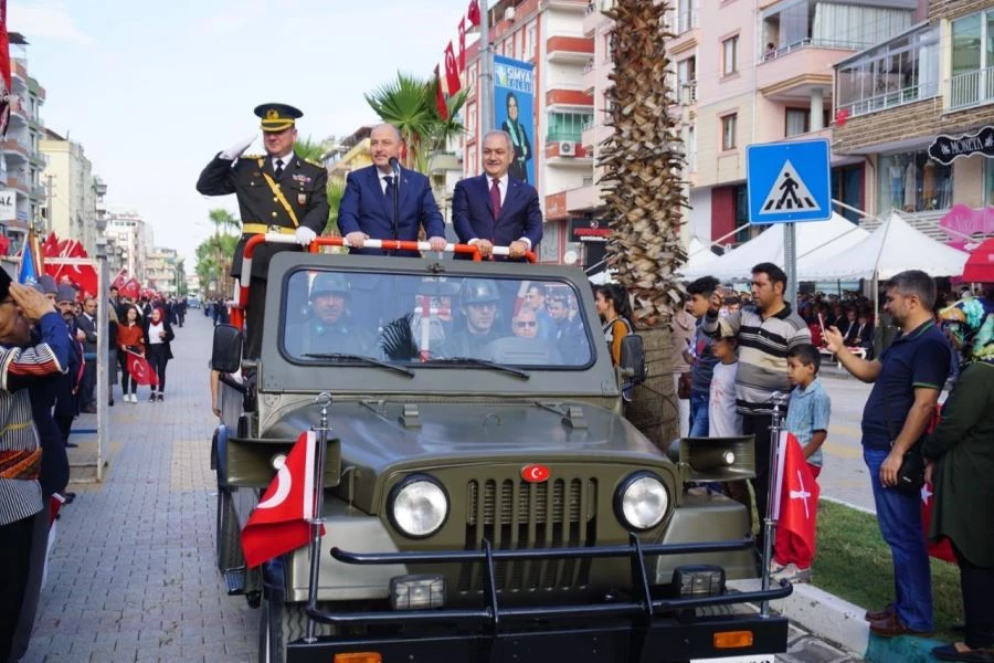 Vali Coşkun, Garnizon Komutanı Albay Sancaktar ve Belediye Başkanı Kadir Kara, törene katılan öğrencilerin ve vatandaşların bayramını kutlamasının ardından, saygı duruşunda bulunulup, İstiklal Marşı okundu. Cumhurbaşkanı Erdoğan'ın mesajının okunmasının ardından konuşan Vali Coşkun, Türkiye Cumhuriyeti’nin kuruluşunun 96. yıl dönümünde büyük bir coşku, mutluluk, onur ve gurur içerisinde olduklarını kaydetti. Cumhuriyet'in, her türlü imkânsızlıklara rağmen çok ağır bedeller ödenerek, örnek vatan sevgisi, hürriyet ve istiklal aşkıyla gösterilen kahramanlığın eseri olduğunu vurgulayan Vali Coşkun," Nitekim ezelden beridir hür yaşamış Türk Milleti Kurtuluş Savaşı'nı da bu azimle kazanmış ve bu kazanımı Cumhuriyet’le taçlandırarak, tarihimizin en büyük dönüm noktalarından birisini gerçekleştirilmiştir." dedi.