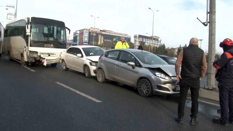 Kaza saat 09.00 sıralarında Beylikdüzü Haramidere mevkii Topkapı istikametinde meydana geldi. Edinilen bilgilere göre, Topkapı yönünde seyir halinde olan 34 CGS 577 plakalı servis aracının feni boşaldı. Freni boşalan araç, bir İETT otobüsüne ve 8 araca çarparak durabildi. Zincirleme trafik kazasında 2 kişi yaralandı. Kaza sonrasında araçta sıkışan yaralılar, çevredeki vatandaşların yardımıyla kurtarılarak hastaneye kaldırıldı. D-100 karayolu Topkapı yönü Haramidere mevkii bir süre trafiğe kapandı. Yapılan ihbar üzerine olay yerine polis, sağlık ve itfaiye ekibi sevk edildi. Ekiplerin çalışmaları sonucu araçlar kaldırılarak yol trafiğe açıldı.