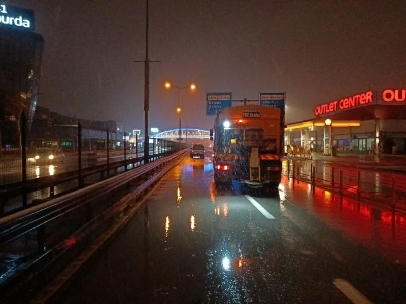 Karla mücadelesini sürdüren Kocaeli Büyükşehir Belediyesi ekipleri, D-100 ve D-130 karayollarında sürekli tuzlama çalışması yapıyor.