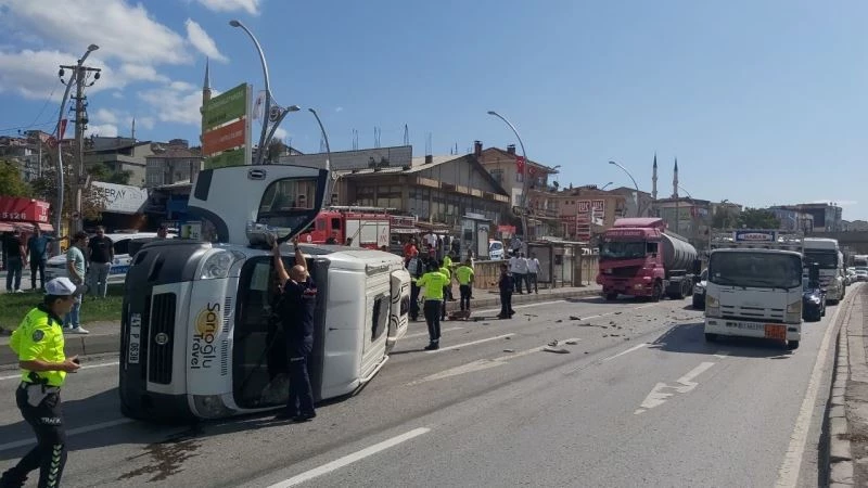 D-100’de tankerin çarptığı servis minibüsü devrildi: 1 yaralı