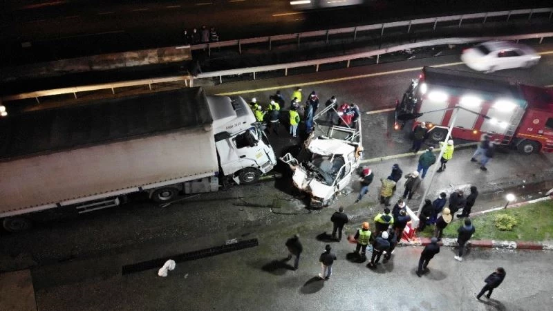 Sakarya’nın Geyve ilçesi D-650 karayolu üzerinde tır ile kamyonetin çarpışması neticesinde meydana gelen feci kazada 1 kişi hayatını kaybetti, 2 kişi ağır yaralandı. Ortalığın savaş alanına döndüğü ve araçların adeta kağıda döndüğü kazada sıkışan sürücüleri ekipler dakikalarca kurtarmak için uğraştı. Meydana gelen kaza sonrası karayolunda oluşan uzun araç kuyrukları da havadan görüntülendi.