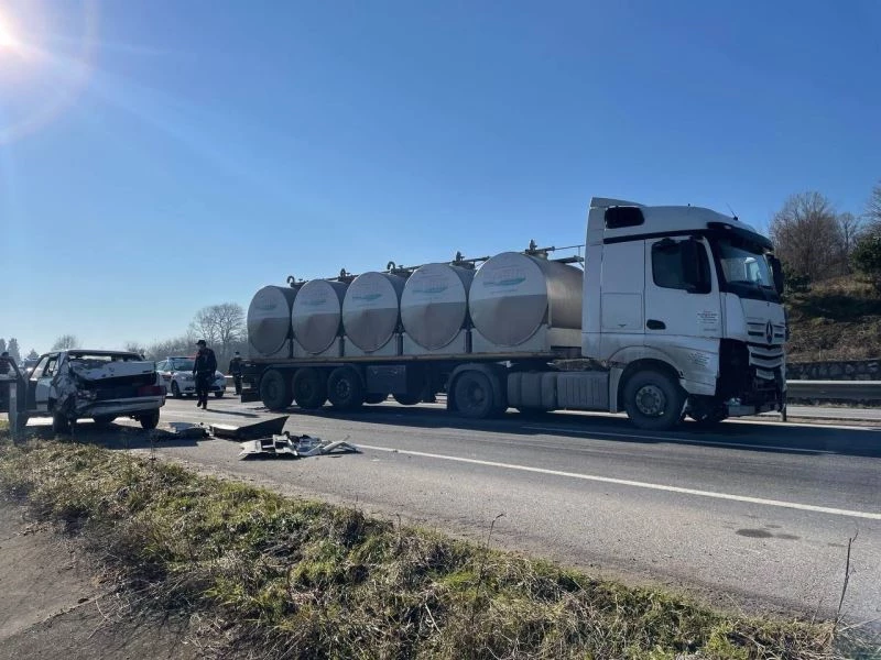 D020 karayolunda kamyon ile otomobil çarpıştı: 1 yaralı