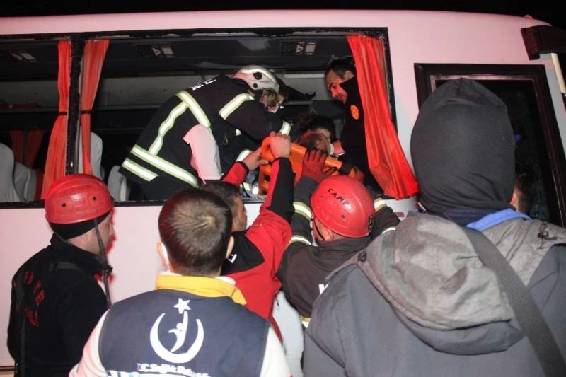 Kaza, D100 karayolu Emekevler Mahallesi mevkiinde meydana geldi. Edinilen bilgilere göre, Ankara istikametine giden Selahattin G. idaresindeki 41 NJ 136 plakalı özel halk otobüsü, aynı istikamette yavaşlayan Erhan Tabar yönetimindeki 03 LB 282 plakalı Mercedes marka tıra arkadan çarptı. Kazada otobüs sürücüsü araç içerisinde sıkışırken, araçta bulunan 5 yolcu da yaralandı. İhbar üzerine olay yerine çok sayıda itfaiye, sağlık ve polis ekipleri sevk edildi. Kısa sürede olay yerine gelen itfaiye ekipleri, Selahattin G.’yi sıkıştığı yerden kurtardı. Daha sonra yaralı sürücü otobüsün camından sedyeyle çıkartıldı. İlk müdahaleleri ambulanslarda yapılan Selahattin G. ve ismi öğrenilemeyen 5 yolcu, çevredeki hastanelere kaldırıldı. Polis ekipleri tarafından yapılan incelemelerin ardından kullanılmaz hale gelen otobüs çekici yardımı ile kaldırıldı.
