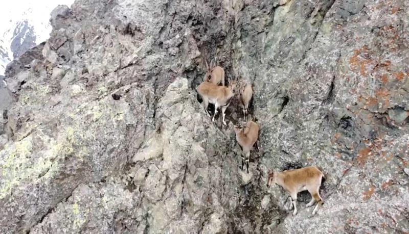 Erzincan’da dağ keçileri dron ile havadan görüntülendi.