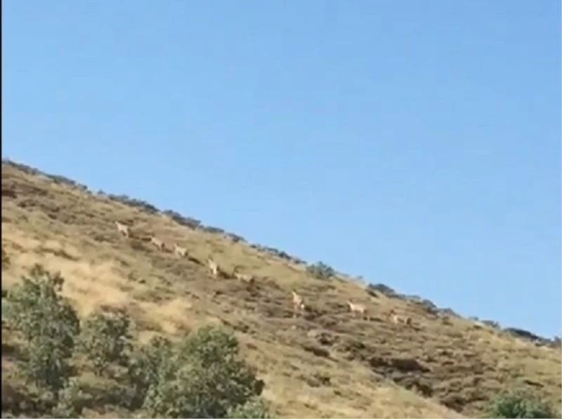 Nesli tükenme tehlikesi altında olduğu için koruma altında bulunan ve avlanması yasaklanan dağ keçileri, Elazığ’ın Baskil ilçesi Hacı Hüseyinler köyü bölgesinde görüntülendi. Bölgeden geçen vatandaşlar, dağlardan sürü halinde inen dağ keçilerini görünce cep telefonuyla kaydetti.