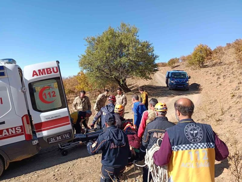 Erzincan’da ava gidip dağlık arazide ayağını kıran vatandaşı, AFAD ekipleri kurtardı.