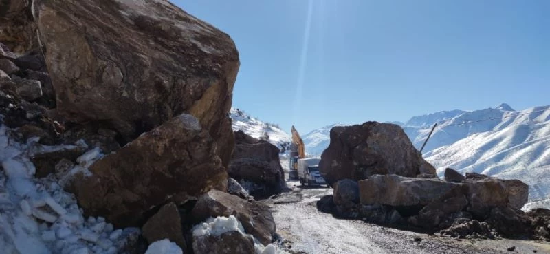 Hakkari’nin Şemdinli ilçesine ulaşımı sağlayan karayolu, dağdan koparak düşen tonlarca ağırlığındaki kaya parçaları nedeniyle kapandı.