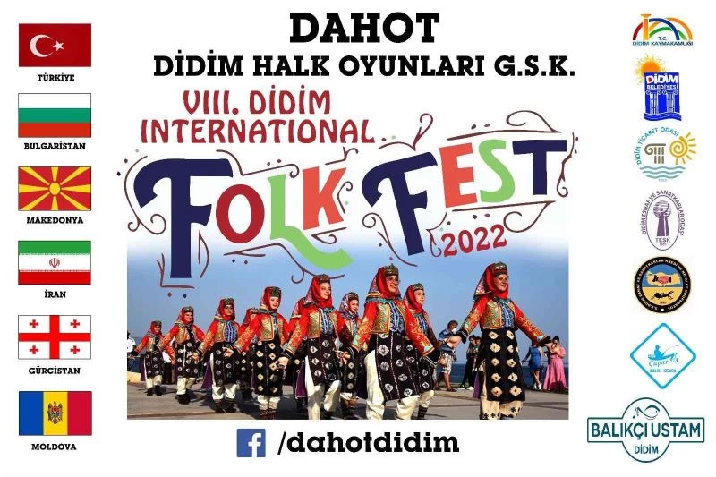 Didim Kaymakamlığı, Didim Belediyesi, Didim Ticaret Odası, Didim Esnaf ve Sanatkarlar Odası, Didim EKK ve özel işletmelerin desteğiyle DAHOT’un öncülüğünde bu yıl 9.’su düzenlenecek olan Uluslararası Halk Dansları Festivalinin içeriği ve katılımcıları belli oldu. 9.Folk Fest 23 Haziran 2022 tarihinde Altınkum Aytepe Barış Heykeli önünden saat 19.30’da Kortej ile başlayacak, gösteriler ise saat 20.30.da Altınkum Yalı Caddesi Zabıta noktası yanında yapılacak.