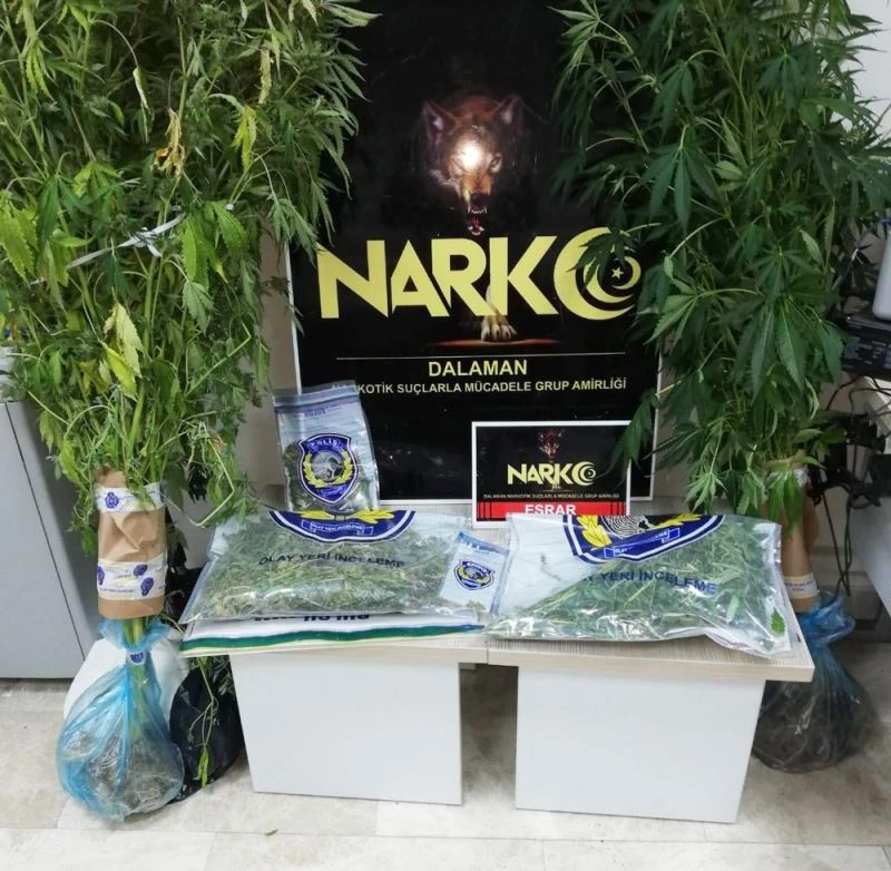 Dalaman İlçe Emniyet Müdürlüğü Narkotik Suçlarla Mücadele Grup Amirliği ekipleri, 2 ayrı ikamette yaptığı aramada 83 kök hint keneviri, 808.4 gr esrar maddesi, 1,25 gram takoz esrar ve uyuşturucu madde yetiştirme düzenekleri ele geçirdi.