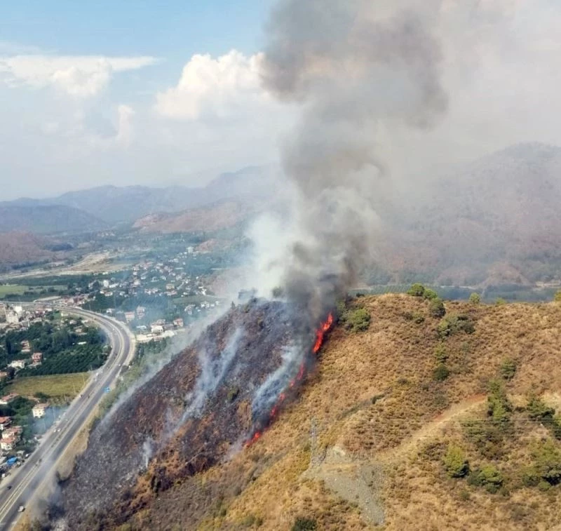 Dalaman-Fethiye karayolu üzerinde yıldırımdan çıktığı tahmin edilen orman yangını başladı.