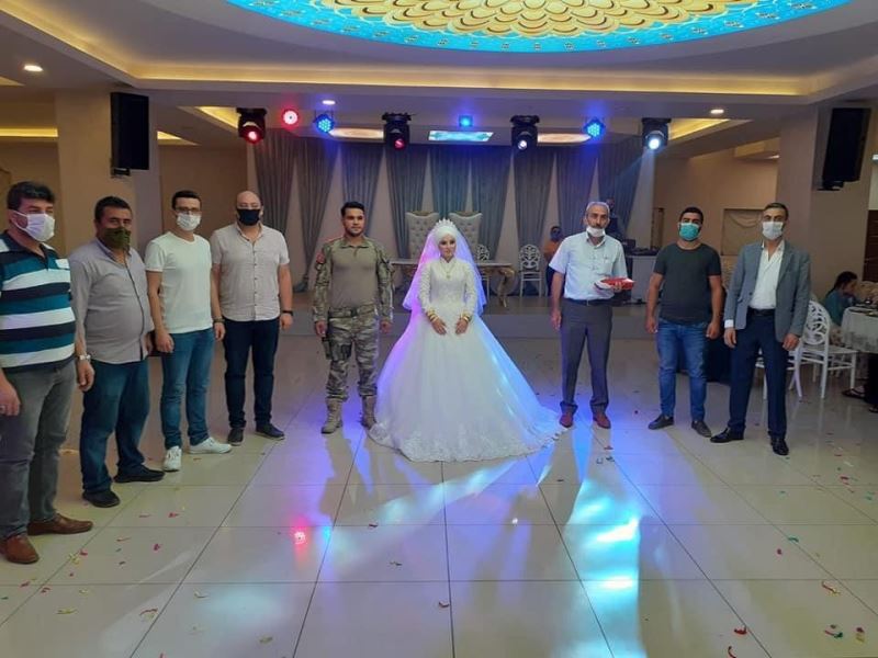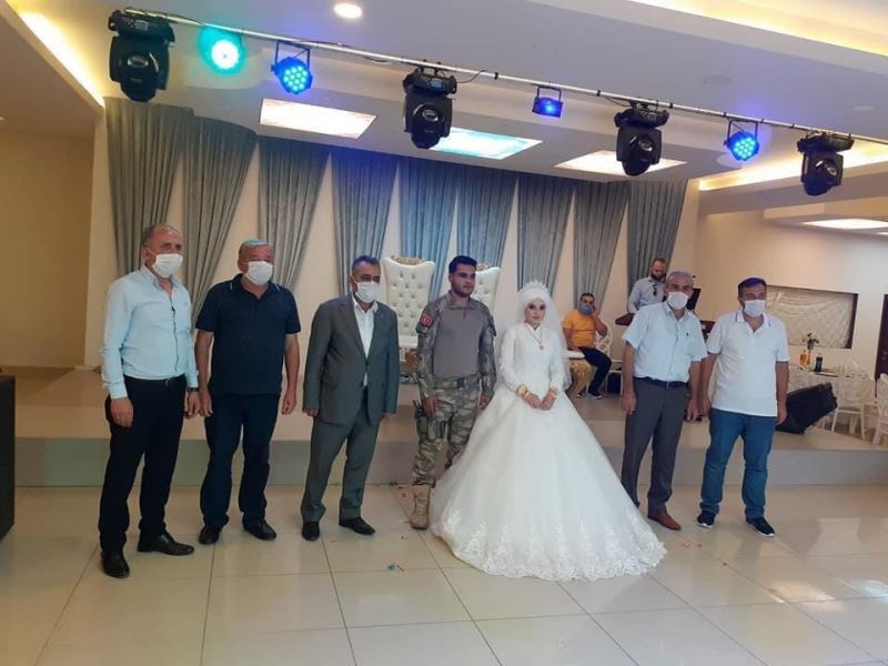 Suriye’de görev yapan Uzman Çavuş, Bursa’daki düğününde damatlık yerine askerî üniformasını giydi.