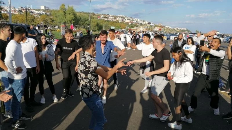 Tekirdağ’ın Süleymanpaşa ilçesinde sahil dolgu alanında dans eden gençlerin eğlencesi renkli görüntülere sahne oldu.