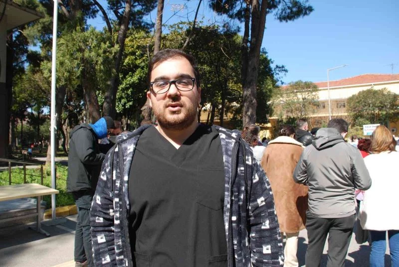 14 Mart Tıp Bayramı’nda, İzmir genelindeki çok sayıda sağlıkçı bağlı bulundukları hastanelerde basın açıklamaları gerçekleştiriyor. Sağlık Bilimleri Üniversitesi İzmir Tepecik Eğitim ve Araştırma Hastanesinde de çok sayıda sağlıkçı bir araya gelerek hem sağlıkta şiddeti protesto etti hem de taleplerini yineledi. Basın açıklamasında, dün sabah bir hasta yakını tarafından saldırıya uğrayan beyin ve sinir cerrahisi servisinde görevli asistan Dr. Emre Arslan da bulundu. 14 Mart Tıp Bayramı’da tüm sağlık çalışanlarının gününü kutlayan Arslan, "İnşallah bugün, güzel şeylere vesile olur ve bazı şeylerin farkındalığı artar. Hepimizin işini severek yapacağı koşullar sağlanır. Benim başıma gelen olay, herkesin başına gelebilecek bir olay. Bu tür eylemler, aslında bizim yapmamız gereken şeyler değil. Bu duruma gelmemek gerekiyor ama sesimizi duyurmamız gerektiği için bu şekilde adım atma kararı alıyoruz. Bizim tek isteğimiz; sevdiğimiz işi sevdiğimiz şekilde ve güvende hissederek özveri ile yapabilmek. Bizim mesleği seçme amacımız, insanlara faydalı olabilmek. Fedakarlık yapmaktan mutluyum ve şikayetçi değilim. Sadece insanların da bunun farkında olması lazım" diye konuştu.
