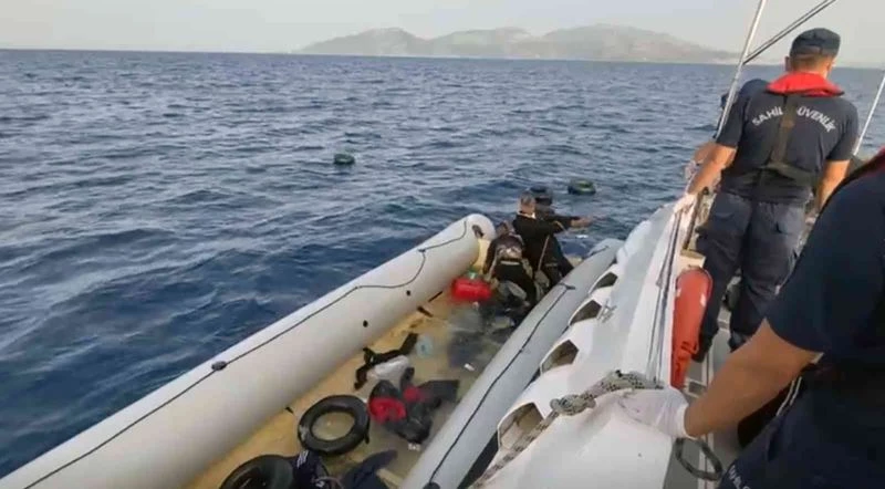Muğla’nın Datça ilçesi açıklarında lastik botu arızalanan lastik içindeki 29 düzensiz göçmen kurtarıldı.