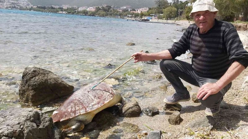 Muğla’nın Datça ilçesinde caretta caretta cinsi kaplumbağa ölü olarak kıyıya vurdu.