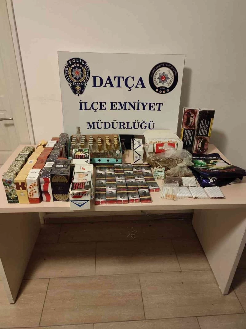 Edinilen bilgiye göre, Datça’da kaçak tütün satışının önlenmesine yönelik İlçe Emniyet Müdürlüğü ekiplerinin yaptığı çalışmalarda 3 işyerinde arama yapıldı. Yapılan aramalarda, 23 adet üzerinde herhangi bir bandrol bulunmayan makaron paketi, 7 paket makaron, 9 adet sahte olduğu oldugu değerlendirilen bandrol, 1 adet beyaz-mavi renkli kutu içerisinde muhtelif sayıda makaron, 1 adet paket içerisinde 94 gr kıyılmış tütün, 1 adet 2005 ibareli paket içerisinde 20 gr kıyılmış tütün, 1 adet şeffaf poşet içerisinde 16 gr kıyılmış tütün, 73 adet parfüm şişesi, 1adet şeffaf poşet içerisinde ağzı açık halde bulunan 210 gram kıyılmış tütün, 3 adet paket halinde ağzı acık makaron, 3 kutu üzerinde 2005 yazılı makaron ele geçirildi. Bahse konu 3 işyeri sahibi hakkında adli ve idari işlem yapıldı.