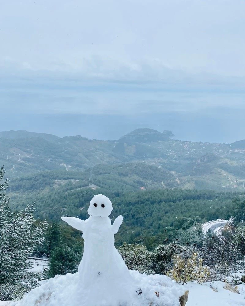 Muğla’nın turistik ilçesi Datça’nın yüksek kesimlerine yağan kar vatandaşları sevindirdi.