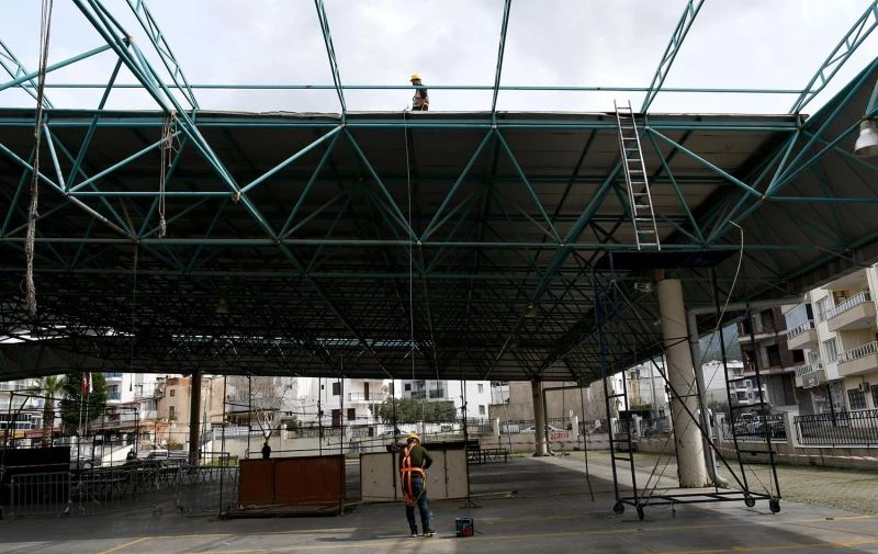 Kuşadası’nda bir süre önce etkili olan sağanak yağış ve şiddetli fırtına, Davutlar Mahallesi Balkan Sokak’ta bulunan kapalı pazar yerinin çatısının bir kısmına zarar verdi. Bunun üzerine Kuşadası Belediyesi, bölge sakinlerinin ve pazarcı esnafının durumdan olumsuz yönde etkilenememesi için harekete geçti. 5 bin 600 metrekarelik alan üzerine kurulu olan pazar yerinin çatısında Fen İşleri Müdürlüğü’ne bağlı ekipler tarafından bakım çalışması başlatıldı. Çalışmada önce uzay çatının hasar gören kısmı söküldü. Daha sonra çatının monte edileceği makas bağlantı sistemi kurularak demir profiller yenilendi. Tadilat, polikarbon malzemeden üretilen çatı kaplamasının monte edilmesiyle sona erecek.