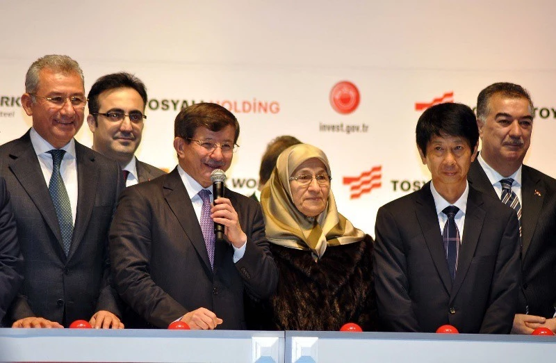 AK Parti Genel Başkanı ve Başbakan Prof. Dr. Ahmet Davutoğlu, Osmaniye`de, partisinin 5?inci olağan il kongresine katıldı. Davutoğlu daha sonra Türkiye`nin ilk ileri teknoloji ve yüksek katma değerli yassı çeliğini üretecek olan Tosyalı Toyo Çelik A.Ş. üretim tesislerinin temel atma törenine katıldı. Osmaniye Organize Sanayi Bölgesi 2`nci kısımda gerçekleştirilen programda konuşan Tosyalı Holding Yönetim Kurulu Başkanı Fuat Tosyalı şu anda yıllık 3.5 milyon ton kapasitede üretim yaptıklarını belirterek, "2017 itibariyle üretim hedefimiz 6 milyon ton, 2020 yılında ise 10 milyon ton üretime ulaşacağız. Şu an itibariyle dakikada 5 bin metre boru üreten sessiz bir deviz. Tek başımıza, Türkiye`deki diğer tüm boru üreticileri kadar üretim yapıyoruz. Hammaddeden nihai boru üretimine kadar tek çatı altında yapılanmış tek şirketiz. Bu bize büyük bir rekabet avantajı sağlıyor" dedi.1952 yılında teneke soba boru üretimi ve ticareti yapmak üzere kurulan şirketin bugün uluslararası bir çelik üreticisi konumuna yükselmesinden duydukları mutluluğu vurgulayan Tosyalı, "Tosyalı Holding`in 2014 yılı ihracatı 550 milyon doları aştı. 2015 yılı için 805 milyon dolar, 2016`da ise 850 milyon dolar ihracat hedefimiz bulunuyor. İhracatta gelen rekor rakam ve katkımız olan 600 Milyon dolar bizleri de mutlu etti. Hükümetimizin 2023 yılı ihracat hedeflerine uygun bir şekilde, biz de Tosyalı Grubu olarak en az 1,5 milyar doların üzerinde ihracat hacmine ulaşmayı hedefliyoruz" dedi.Temel atma töreninde konuşan Toyo Kohan Yönetim Kurulu Başkanı Sumida Hirohiko ise Osmaniye`deki fabrikanın yıllık üretim miktarının Japonya`daki tesisin üretim miktarı ile aynı olacağını ifade etti.Başbakan Ahmet Davutoğlu 62`inci hükümeti kurar kurmaz yaptıkları en önemli atılımlardan bir tanesinin de 25 sektörel programı ilan ettiklerini belirterek, "Burada ilk ilan ettiğimiz 9 sektörel programda en önemli husus ithalata olan bağımlılığın azaltılması ve sanayide ARGE`nin üretim ve teknoloji yoğunluğunun arttırılmasıydı. Bu yatırımın, bizi heyecanlandıran en önemli yönlerinden birisi Demir Çelik sektörümüze ileri teknoloji boyutu kazandıracak olması ve Japon bilgi, tecrübe ve teknolojisinin ülkemize aktarılmasını temin edilecek olmasıdır. Bu anlamda bu tesisi kuran bütün yöneticilere teşekkürü bir borç biliyorum." dedi.Sadece demir çelik sektörü kuruluşlarını değil bütün sanayi kuruluşlarını yoğun ve ileri teknoloji safhasına geçmeye davet eden Davutoğlu, "Türkiye`nin bundan sonraki rekabeti güçlendirecek temel hususlardan birisi ARGE ve inovasyon alanında yapacağımız atılımlar ileri teknoloji aktarımına katkı sağlanması bakımına da büyük bir önem taşıyor. Biz inşallah bu 428 Milyon dolarlık yatırımla demir çelik sektöründe de niteliksel bir değişim yaşayacağımıza inanıyorum. Bu konuda da Tosyalı Tayo Şirketinin öncülük yapmasını bekliyoruz. Çünkü Türkiye, demir çelik sektöründe en çok üretim kapasitesine sahip ilk 10 ülke arasına giriyor. Ancak baktığımız zaman hala ithalatımız ihracatımızın yaklaşık iki misli." dedi.Başbakan Davutoğlu, konuşmaların ardından, Fuat Tosyalı ve annesi Hacı Pervin Tosyal, Toyo Kohan Yönetim Kurulu Başkanı Sumida Hirohiko eşi, Osmaniye Valisi Kerem Al, Milletvekilleri birlikte Türkiye`nin ilk ileri teknoloji ve yüksek katma değerli yassı çeliğini üretecek olan Tosyalı Toyo Çelik A.Ş. üretim tesislerinin temelini attılar. Başbakan Davutoğlu daha sonra karayoluyla Adana`ya oradanda hava yoluyla Ankara`ya gidecek.