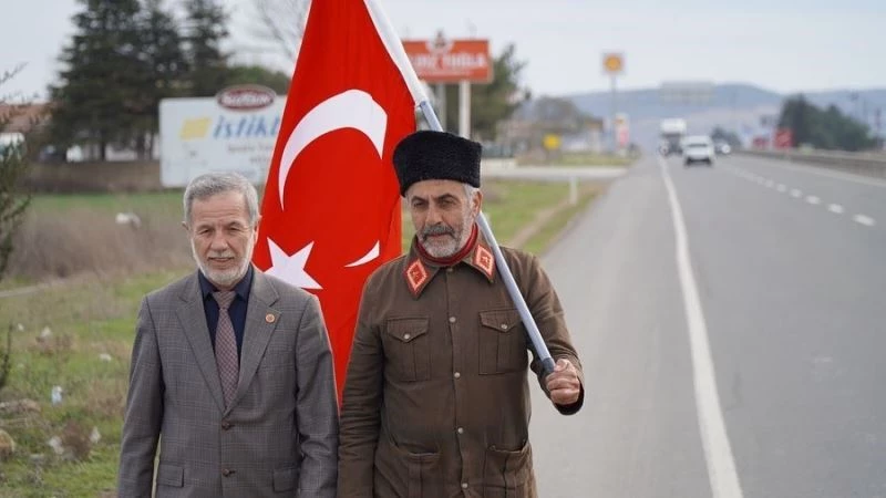 Çanakkale Zaferi’nin 108’inci yılı için şehitler anısına 7 gün önce İstanbul’un Bağcılar ilçesinden yürüyüşe başlayan Saffet Gümüş, elinde Türk bayrağı ile Keşan’a geldi. Bu sene 5. kez aynı yolu yürüdüğünü belirten Gümüş, bayrağı 18 Mart’ta Çanakkale’de yapılacak törende Cumhurbaşkanı Recep Tayyip Erdoğan’a teslim edeceğini söyledi. "Allah, bizlerden Çanakkale ruhunu eksik etmesin" diyerek sözlerine başlayan gazi torunu Gümüş, "Bundan 1 ay önce 10 ilimizde binlerce kardeşimiz vefat etti. Allah, mekanlarını cennet etsin. Yaralılara acil şifalar diliyorum" dedi.