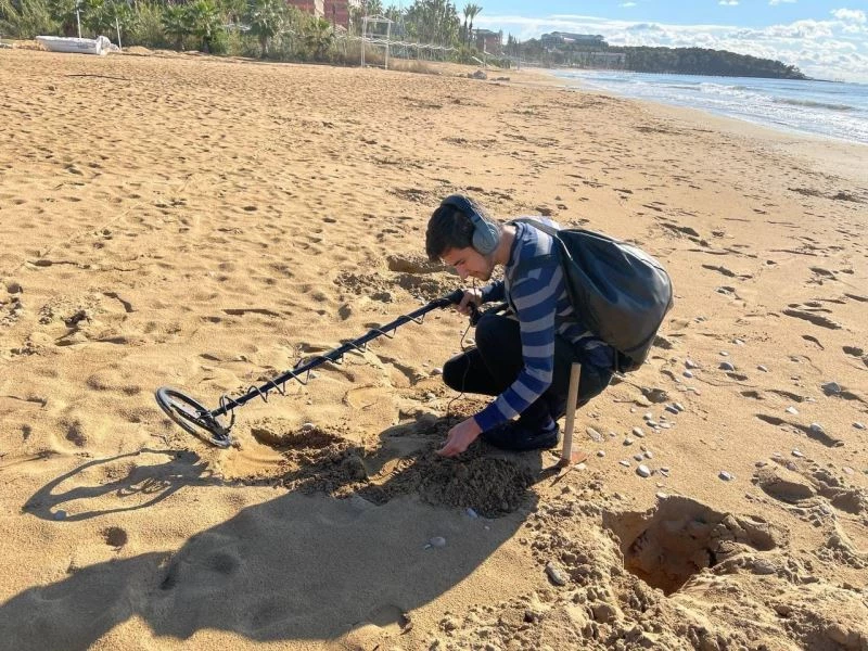 Antalya’nın Alanya ilçesinde yağış ve rüzgarlı hava sonrası define avcıları soluğu sahillerde aldı. Madeni paranın yanı sırada değerli ziynet eşyaları dedektörle arayan avcılar, kazdıkları sahili adeta köstebek yuvasına dönüştürdü.