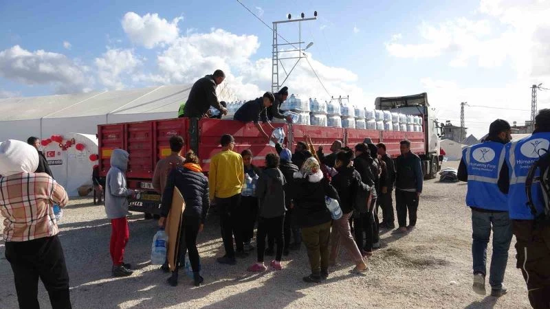 Kahramanmaraş merkezli depremlerin ardından afet bölgesindeki vatandaşlara yardımlar sürüyor. Bugün de Hatay’ın Defne ilçesindeki Orhanlı Çadır Kenti’nde depremzedelere su dağıtımı yapıldı. Çadır kentin sakinleri, su yüklü tırın yanına giderek ihtiyaçları kadarını alıp çadırlarına götürdü. Kocaeli Belediyesi tarafından oluşturulan Orhanlı Çadır Kenti’nde kalan vatandaşlar, şu ana kadar hiçbir şekilde su sıkıntısı yaşamadıklarını söyleyip, yetkililere teşekkür etti.