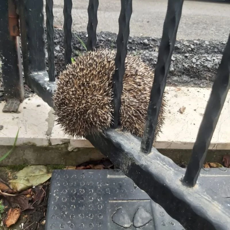 Demir parmaklıklara sıkışan kirpi böyle kurtarıldı
